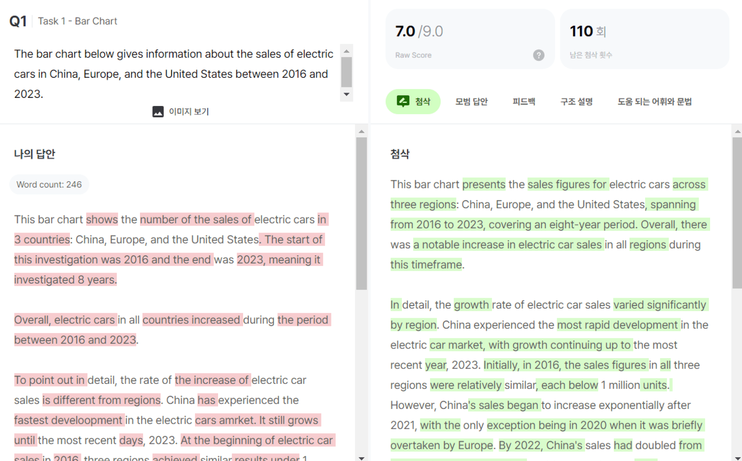 문법 첨삭이 부실하지 않아요.