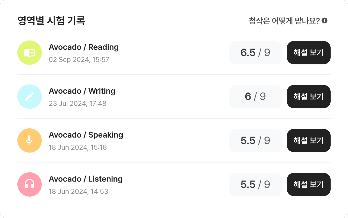 2주만에 스피킹, 라이팅 모두 0.5점씩 올랐습니다🔥 짧은 기간에 효율 최고입니다!